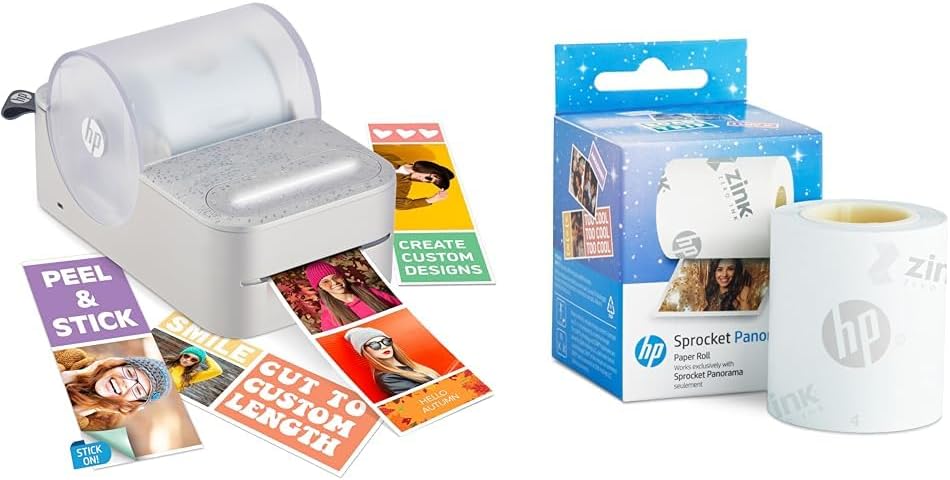 HP Sprocket Panorama 16.4’ (5 Meter) Zink Paper Roll - Zink Zero-Ink Sticky Backed, Smudge-Proof Instant Photo Paper Roll. Compatible with HP Sprocket Panorama Photo and Label Printer