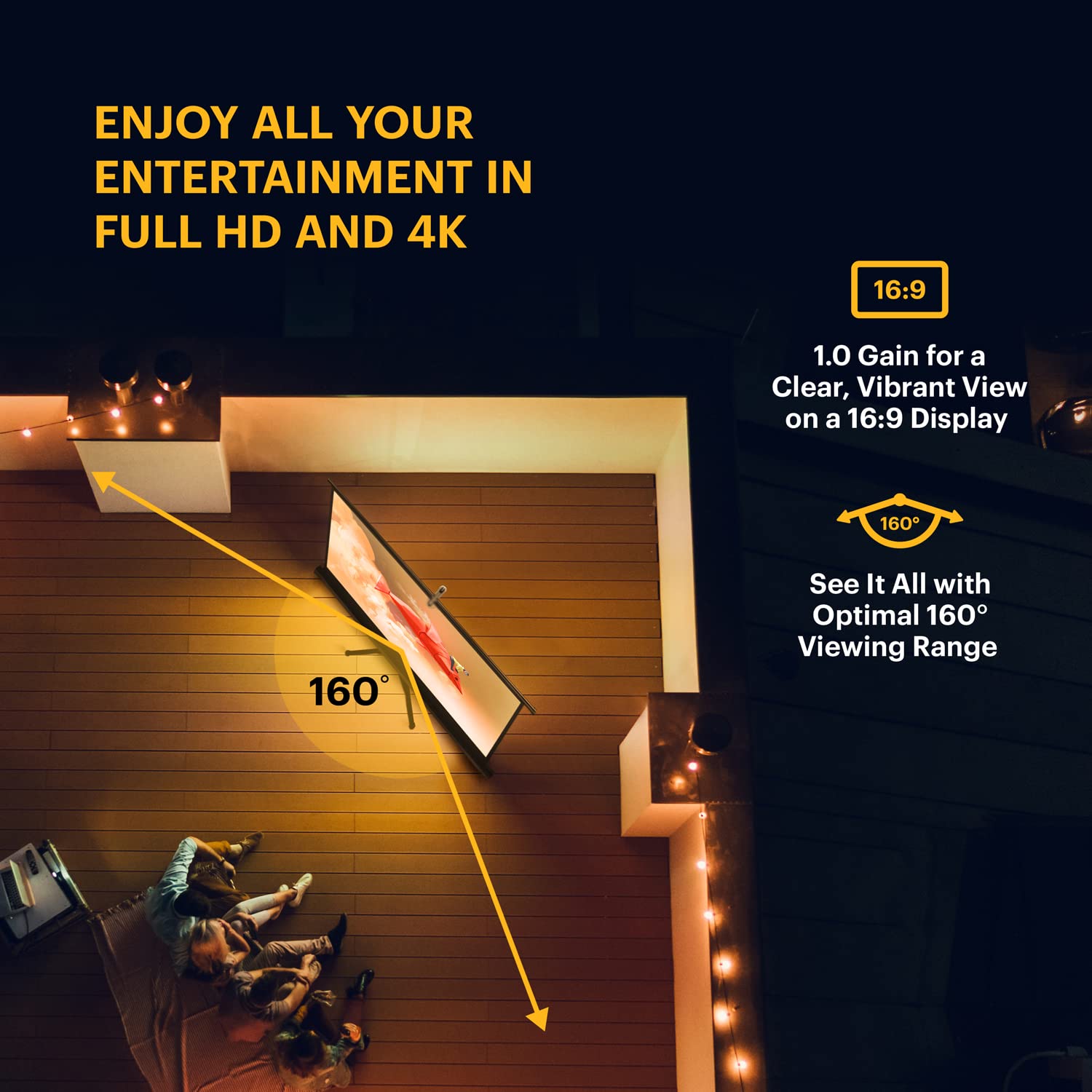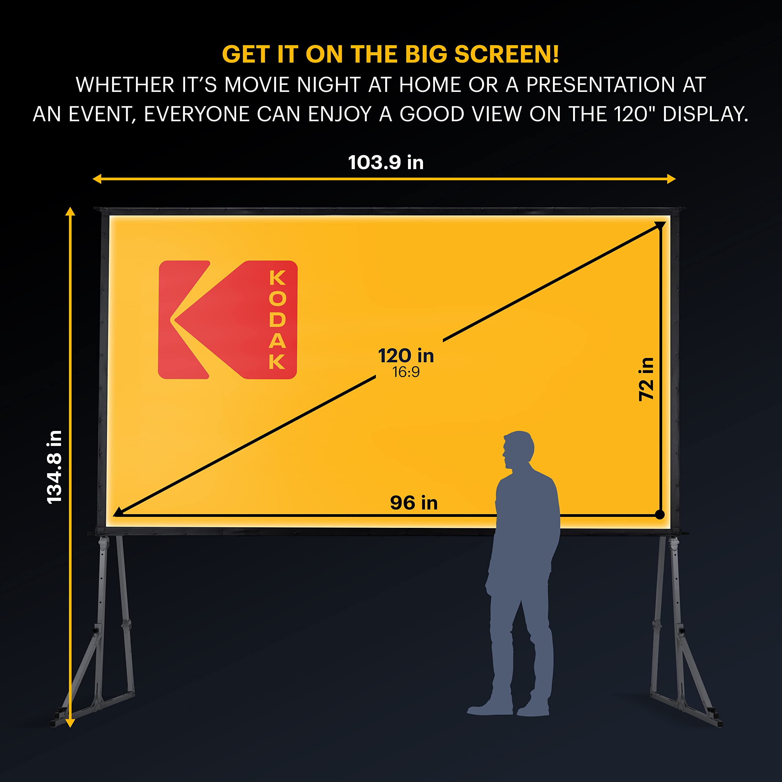 KODAK Portable Projector Screen | 100” Indoor & Outdoor 16:9 Video Projection Surface & Stand with Carry Handle | 1080p, 4K/8K UHD, 3D & HDR Ready | Fast Setup for Movies, Office Presentations & More