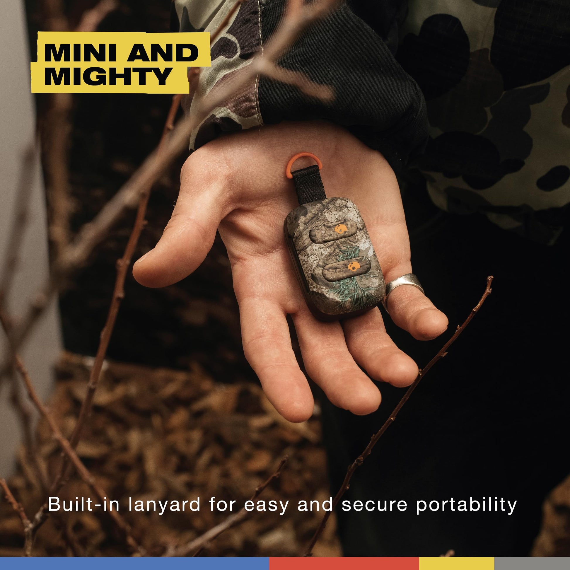 Skullcandy Dime 3 Wireless Earbuds, Bluetooth Headphones, Noise Isolating Fit, Up to 20 Hours Battery, Microphone for iPhone Android, Easy Carry with Integrated Lanyard - Realtree APX Black/Orange